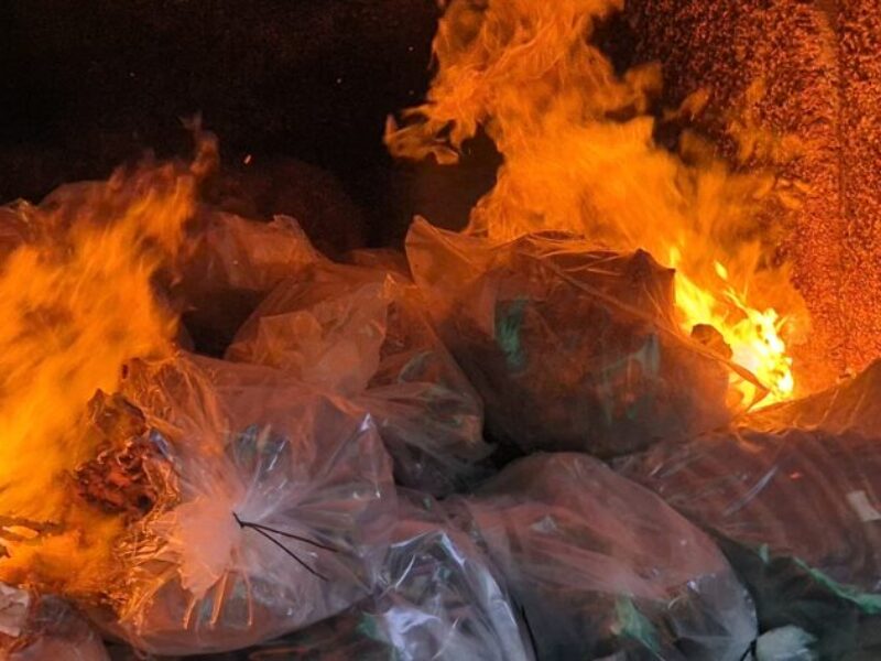 Foto: de recente verbranding van de skeletten van gefokte leeuwen, komende van 1 fokker