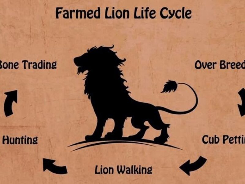 In Zuid-Afrika bestaat al jaren een meedogenloze industrie rondom leeuwen. In dit land leven naar schatting 8.000 gefokte leeuwen. De dieren worden systematisch gefokt waarbij de welpjes al vroeg bij de moeder worden verwijderd. Ze worden ingezet voor betalende vrijwilligers die voor de hopeloze diertjes kunnen zorgen en voor de toerist. Het staat op menig verlanglijstje om met een schattig leeuwenwelpje op de foto te kunnen. Bij het ouder worden, worden de leeuwen ingezet voor zogenaamde toeristische wandelsafari’s.