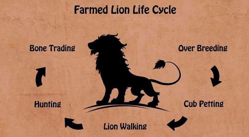 In Zuid-Afrika bestaat al jaren een meedogenloze industrie rondom leeuwen. In dit land leven naar schatting 8.000 gefokte leeuwen. De dieren worden systematisch gefokt waarbij de welpjes al vroeg bij de moeder worden verwijderd. Ze worden ingezet voor betalende vrijwilligers die voor de hopeloze diertjes kunnen zorgen en voor de toerist. Het staat op menig verlanglijstje om met een schattig leeuwenwelpje op de foto te kunnen. Bij het ouder worden, worden de leeuwen ingezet voor zogenaamde toeristische wandelsafari’s.