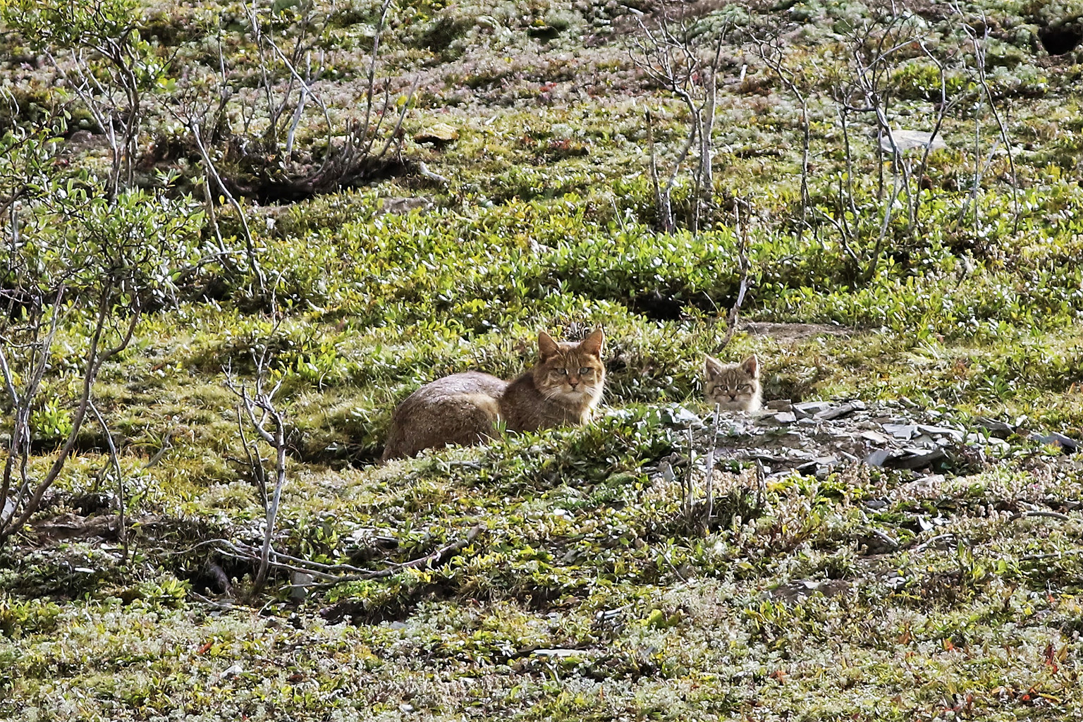 Hieruit bleek dat deze dieren mensen niet schuwden; ze waren juist vaak te vinden rondom menselijke bewoning. De gevolgde katten brachten de meeste tijd door in plantages die worden gedomineerd door duindoorn (een winterharde, stekelige struik die 1 tot 2 meter hoog wordt). De onderzoekers denken dat de dieren dit gebied opzoeken omdat het waarschijnlijk voldoende beschutting en voedsel biedt. En omdat het dicht bij de dorpen ligt, wordt het gebied vermeden door grotere roofdieren zoals wolven of sneeuwluipaarden.